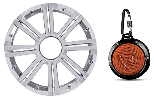 Studio : KICKER Publisher : KICKER Binding : Electronics Product Description Style and Protection: This grille changes the face of your sub from gray to Chrome. You can also remove the LEDs from your KM10 subwoofer's original charcoal grille and install them into this one for exciting, multi-color, lighting! Features: Kicker KMW10GCR 10" Marine Speaker Grille for KM10 10" Marine Subwoofer Replaces factory speaker grille in Chrome Durable weatherproof design for marine applications Rockville RPB1 waterproof portable Bluetooth speaker with 10 watts power! Automatically remembers and syncs with previously synced devices Playback Controls - Play, Pause, Skip Forward, Skip Back, Volume Up, Volume Down Will control next song, pause, play on popular apps like Pandora, Spotify, and others Can control next song, pause, and play from the Bluetooth speaker The built-in mic allows you to speak through the device so you can make and receive phone calls hands-free Circular design fits in the palm of your hand or in your pocket Rugged and Shockproof! Rubberized impact-resistant rubber feet for great sound when placing speaker on any hard surface Compatible with any Bluetooth devices such as iPad, iPhone, Laptops, Android phone, other cell phones, iPods, other Bluetooth MP3 Players Distortion: Less than 1 % Natural sound with enhanced bass response Frequency Response: 150HZ - 18KHZ Built in advanced speaker design with horn speaker unit for increased output power Dimensions of Unit (inches): 3.35" x 3.43" x 1.34" Height Unit weight: 0.3 pounds 90 Day Money back guarantee! 0