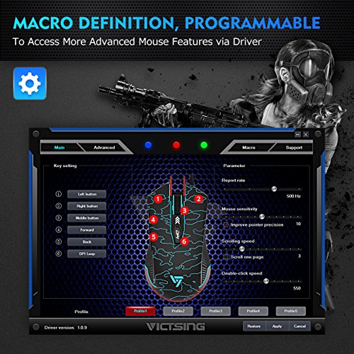 Support Macro Programming. Programmable mouse can meet different gaming demands. Easily customize your personal configuration, such as mouse sensitivity, double-click speed, etc. You can access more advanced mouse features via the drive disk.