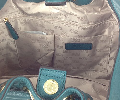 -. Feature : Keep your everyday essentials stylishly stowed in the MICHAEL Ring Tote. / Soft, smooth, supple, and luxurious leather bag . Custom silver hardware. / Cinched top with grommet detail. Hanging MK logo charm and tonal leather tassel. / Top magnetic closure. Logo P.R.Int lining. Interior zip, wall and cell-phone pockets. / 15"W x 12"H x 6"D 11" drop