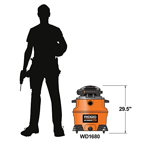 The Ridgid 40108 is a 16 gallon wet/dry vacuum. This vacuum is a multifunctional powerhouse and blows at 180 mph. The included 20' extra long power cord accommodates a wider cleaning area, a built-in drain allows for this vacuum to suck up water and then empty it out later. The dedicated blower wand locks into the port so it can't blow itself out of place, letting this vacuum blow harder with more control using the 6.5 peak horsepower motor. Why do so many professionals choose RIDGID tools? The answer is simple, trust. Millions of RIDGID tools go to work every day in plants, on construction sites and in countless other harsh environments. One of the design parameters for developing RIDGID tools is efficient operation. We engineer ease-of-use into every product. And, we include innovative features to ensure that our tools and machines get jobs done as quickly as possible without compromising quality.Feature