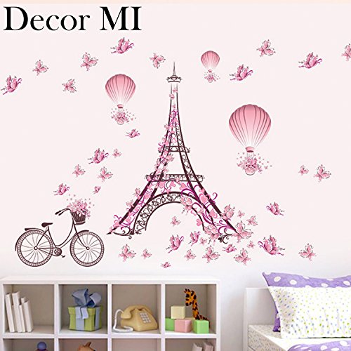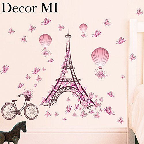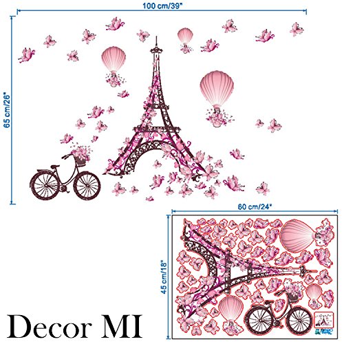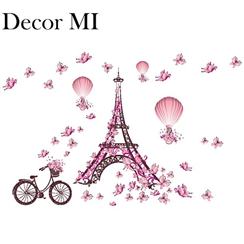 Decor MI Romance Eiffel Tower Paris Tower Butterfly Balloon Wall Decal Stickers Waterproof Removable Background Wall Art Wallpaper decorations 39x26 inches