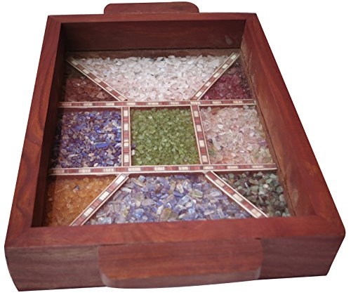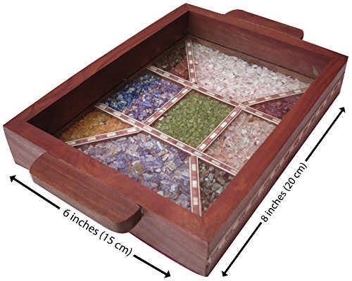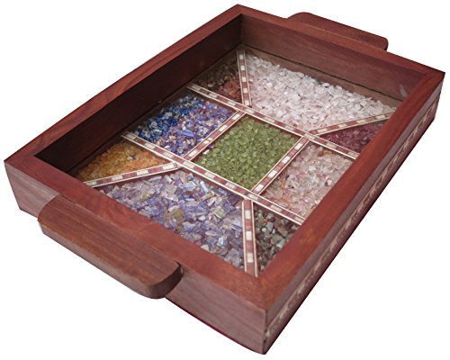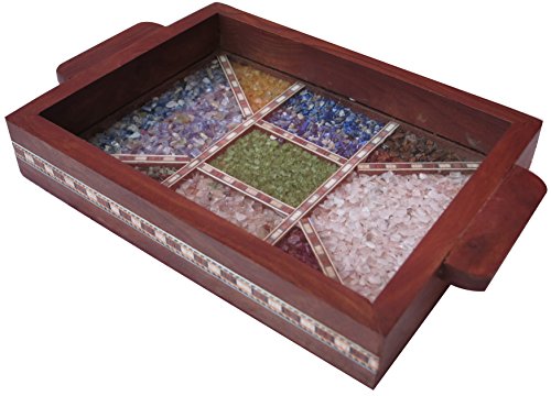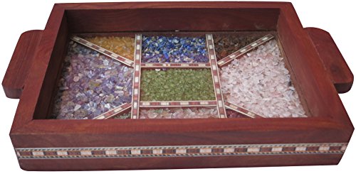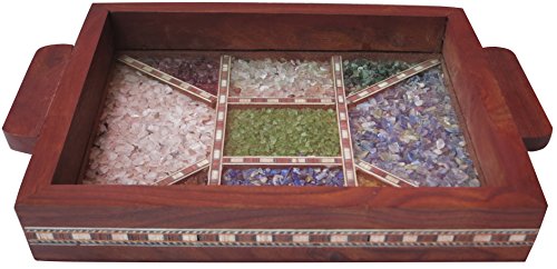 Serving tray made with combination of decorative crushed gem stones & Wood Carving