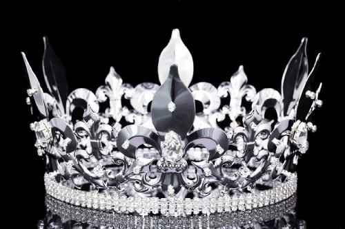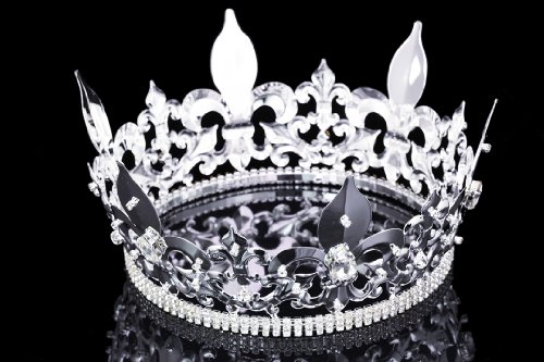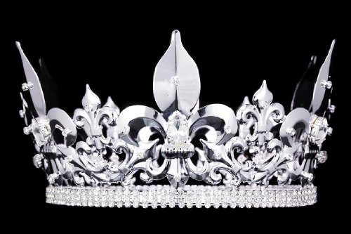 4.5" Tall Fleur-De-Lis King Royal Full Crown - Silver Plated Clear Crystals T995