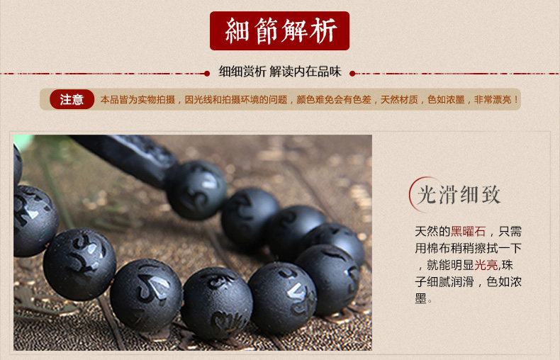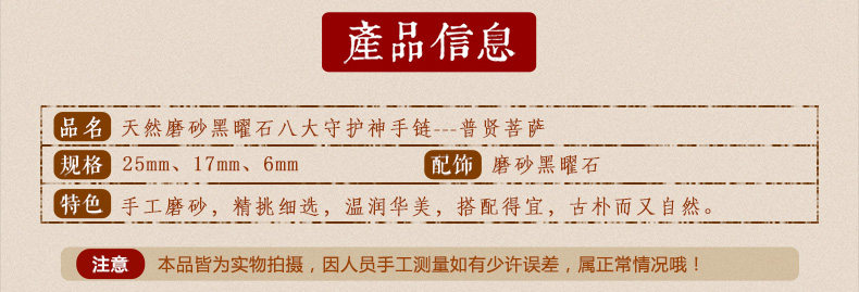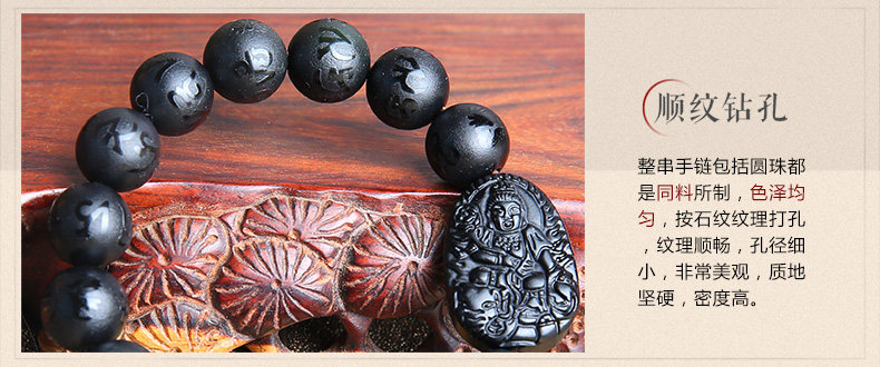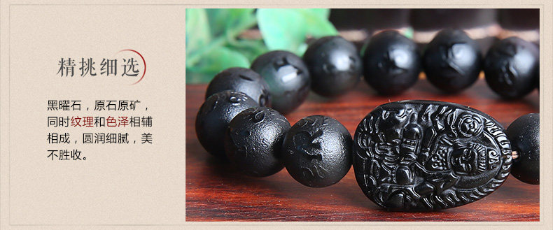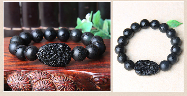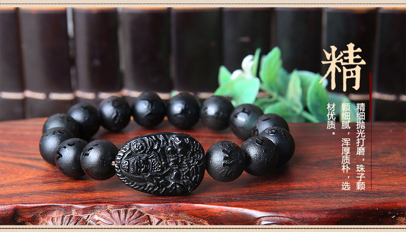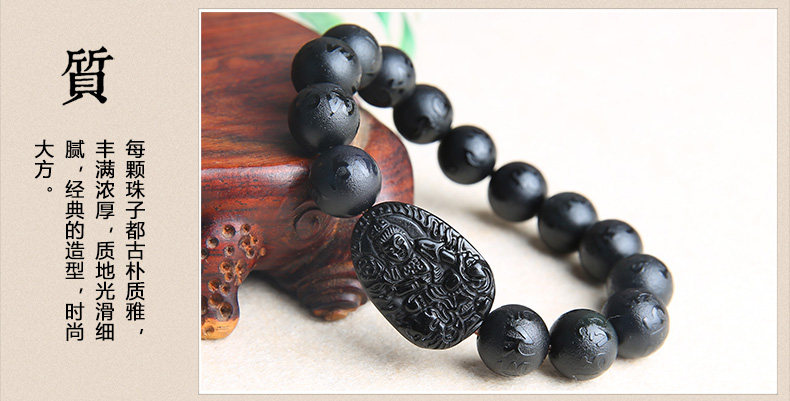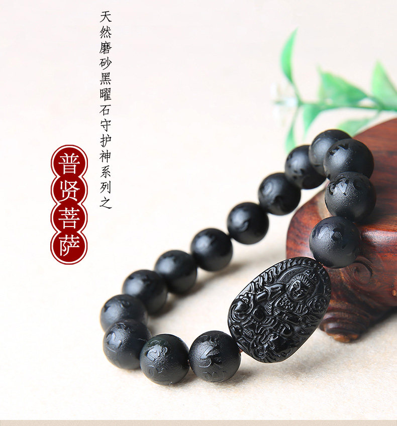 开光黑曜石普贤菩萨属龙属蛇手链 本命佛六字真言男女款手串
