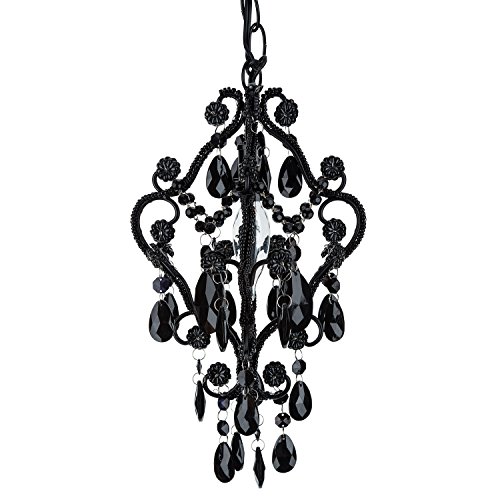 From our Tiffany Collection, this contemporary mini 1-light white chandelier is perfect for displaying in nursery rooms, baby girls rooms, bedrooms, bathrooms, kitchens, guest rooms, powder rooms, closets, or any small spaces. With its compact size, it can also be hung in offices, commercial and retail stores, restaurants, or hotels. Looking to find a nice gift for your friends and family? This fixture makes a great wedding, birthday, and housewarming gift. Elegance comes in packages both big and small, and this white chandelier is proof. It surely will be a conversation piece that will last. The intricate design features a wrought iron frame that is coated in a semi-matte white colored paint and decorated with clear hand-strung acrylic beads and crystal pendants. This fixture is ready to hang immediately as a plug-in chandelier, and no assembly is required. It comes with 2 white swag hooks, along with a 15-ft electrical cord and a 12-ft metal ceiling chain. If the hard-wire mounting option is preferred, don't worry, because this item also includes a full ceiling kit and a matching ceiling plate. This means you won't have to purchase any additional accessories to mount it to the ceiling. (Professional installation recommended). *For cleaning, wipe crystals with a dry cloth *Extra crystals included for replacement partsFeature