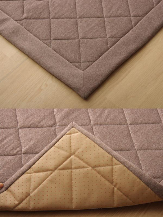 | デニム調のキルティングラグカーペットです。キルティング加工をすることで、中綿が寄ったりズレたりしにくくなります。表地にはしなやかで伸縮性のある生地を使用しています。とても柔らかくソフトな風合いです。 |