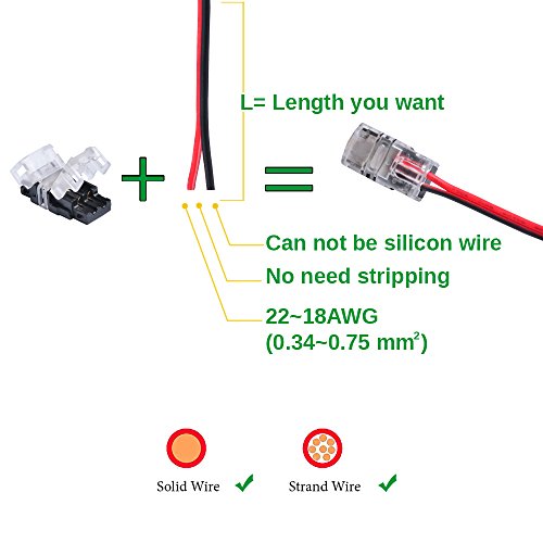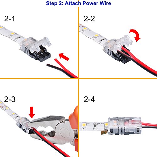 - With help of innovative inner-arc cap to fit strip light coating surface and piercing contact design, connector can grip strip light tightly,never worry strip light or wire moving out of connector. Even workable to strip light with 3M VHB red foam adhesive tape.
