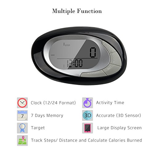 -. Title : HAPTIME 3D Pedometer with Clip and Strap, Accurately Counting Steps/ Distance/ Calorie, Large Display, Daily Target Monitor, 7 Days Memory and Activity Time for Walking Jogging Running