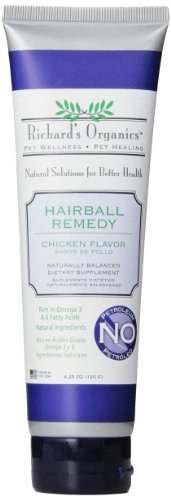 Richard's Organics Chicken Flavored Hairball Remedy naturally eliminates and prevents hairballs. Delicious chicken flavor and no artificial color. Gel formula made with Lecithin and Beeswax lubricates swallowed hair, allowing it to pass gently and easily through the intestinal tract.Feature
