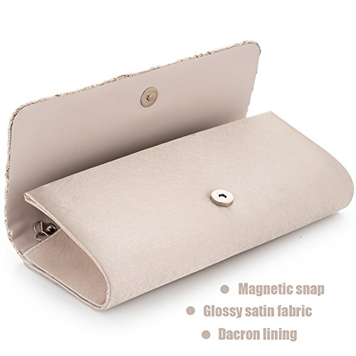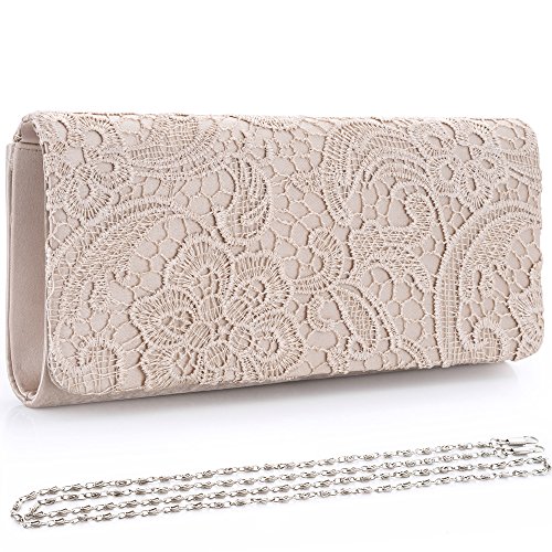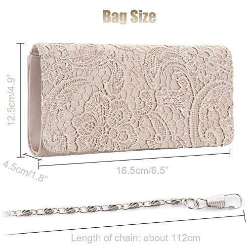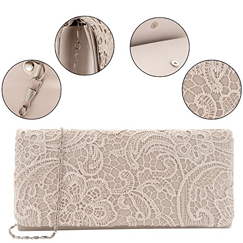 Womens Satin Evening Bag Clutch Handbag Elegant Floral Lace Shoulder Bag Purse for Wedding Bridal Party Prom