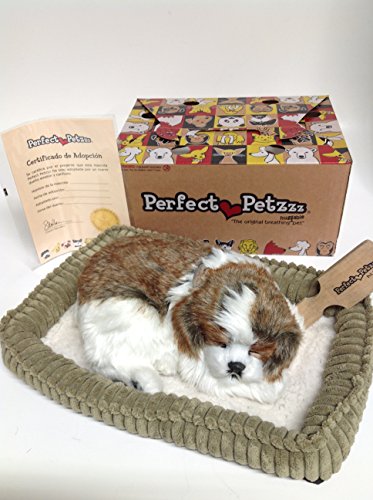 This puppy's belly moves up and down as it breathes and it makes soft snoring noises. This pet is hand crafted with soft synthetic fur and comes with one 'D' Alkaline battery. This pet comes with its own bed, collar with tag, brush and adoption certificate.Feature