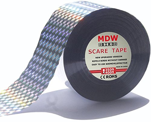 -. Brand : MDW -. Feature : 350ftx 2inch in value roll / The tape uses high quality reflective Diamond Patterns and noise from tape twisting in wind alarming birds of danger to scare away all types of birds and pests. / Prevent bird damage,perfect for garden,crops and other property from bird / Repellent tape is harmless and chemical-free / Repellent tape is light weight,easier to install and use -. Label : MDW -. Manufacturer : MDW -. Model : MDW-BRIDRP-350 -. MPN : MDW-BRIDRP-350 -. PartNumber : MDW-BRIDRP-350 -. ProductGroup : Lawn & Patio -. ProductTypeName : OUTDOOR_LIVING -. Publisher : MDW -. Studio : MDW -. Title : MDW 350 Ft Bird Repellent Scare Tape,Scare birds without damage
