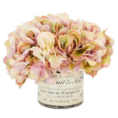Green Hydrangea Bouquet in a French Label Pot Color: Mauve / Cream