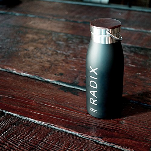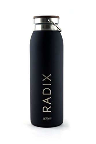 The Radix Supervac is an advanced stainless steel vacuum-insulated bottle for everyday use. By creating a vacuum between two layers of high-grade CR302 steel, the bottle can hold hot beverages for up to 12 hours and icy beverages for up to 24 hours. The design of the bottle is unique compared to most insulating bottles currently on the market. Most bottles use plastic parts for the lid or interior lip. By using only stainless steel, strong flavors such as coffee wont leech into the material, allowing you to switch out drinks without tainting the flavor of your beverage. The cap on the top is made of natural walnut wood, which ages and creates a look unique to every bottle.Feature