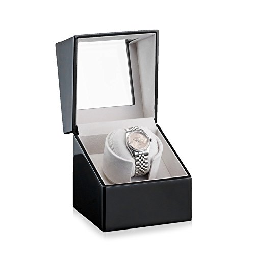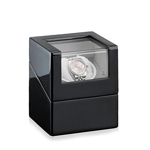 -. Feature : Uhrenbeweger für eine Uhr / Uhrenbeweger mit Sichtscheibe / Uhrenbeweger in Hochglanz Schwarz / Hochwertiger Uhrenbeweger / Uhrenbeweger aus Holz
