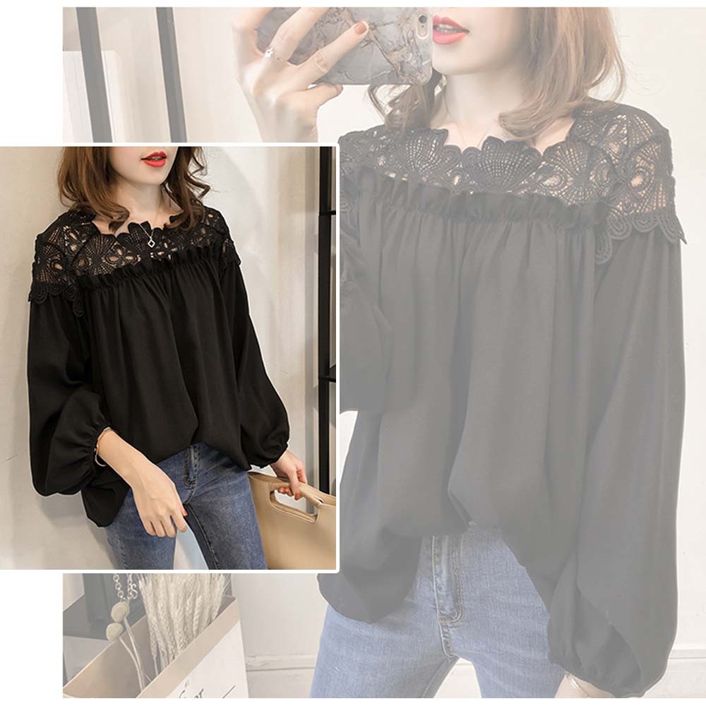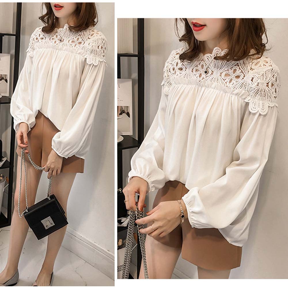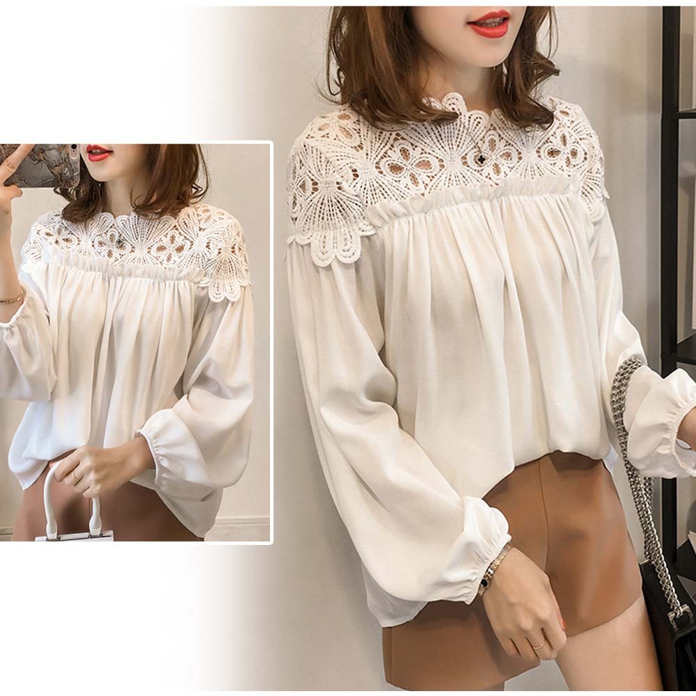 ロマンチックを詰め込んだカットワークレース切り替え仕様の長袖ブラウス