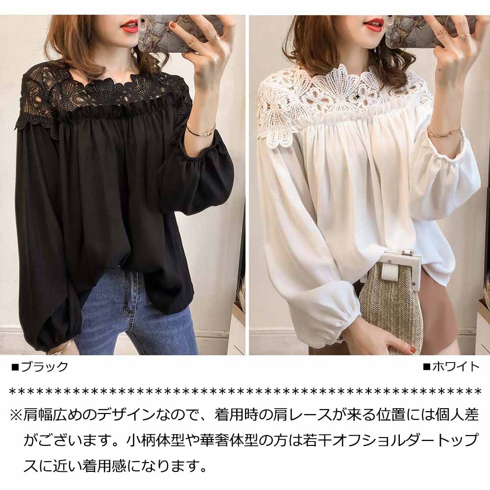 ※肩幅広めのデザインなので、着用時の肩レースが来る位置には個人差がございます。小柄体型や華奢体型の方は若干オフショルダートップスに近い着用感になります。カラー:ホワイト/ブラック