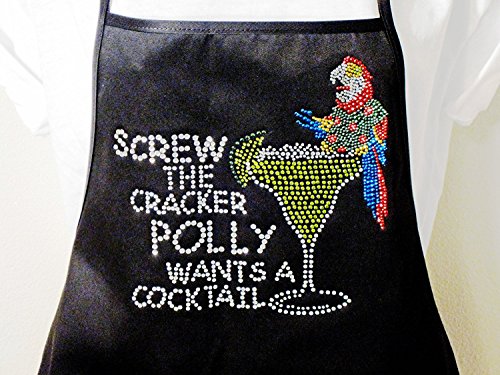 "Screw The Cracker" -Classic Black Apron - Rhinestone - Poly Blend Two Pocket Apron