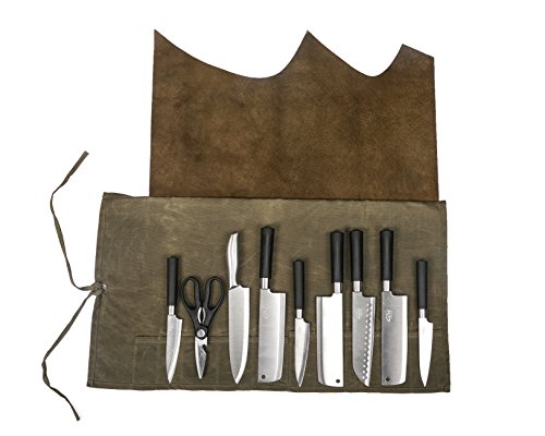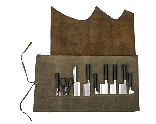 - NICE DESIGN: Attractive and rustic Knife Roll, the Waxed Canvas is water repellant, easy to clean, and looks great with age and usage. the Easiest and great way to store and transport your knives safely.