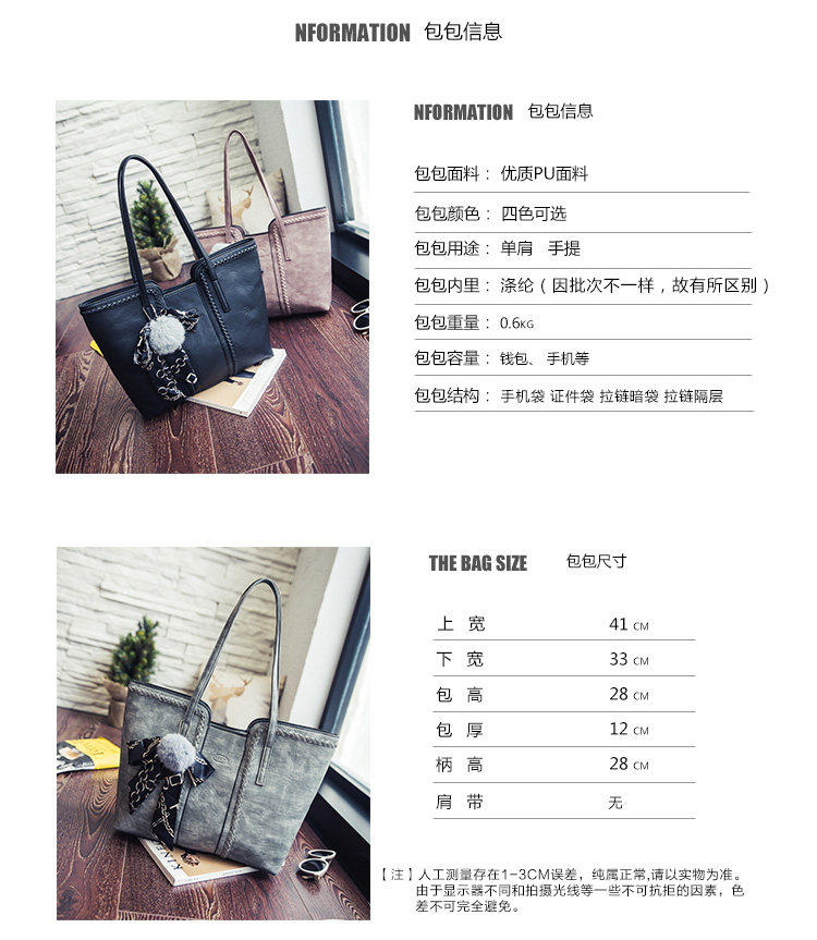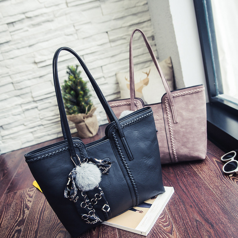 包包女新款韩版大容量丝巾单肩包女包托特包时尚毛球手提大包
