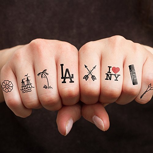 Tattify Tiny LA NY Temporary Finger Tattoos - Coast to Coast (Complete Set of 10 Tattoos - 2 of each Style) - Individual Styles Available and Fashionable...