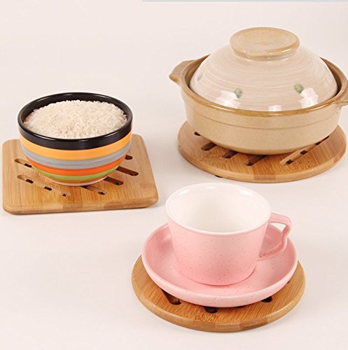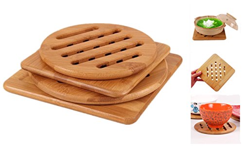 Bamboo Trivet, Weikai Home Kitchen Bamboo Hot Pads Trivet, Heat Resistant Pads Teapot Trivet, Square and Round (Multi-size, Pack of 4)