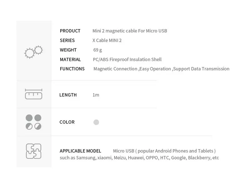 Model Name:Mini 2 magnetic cable for Micro USB