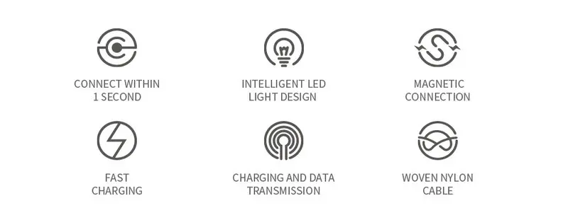 Function:Magnetic adsorption connection,data transmission,car magnet charger