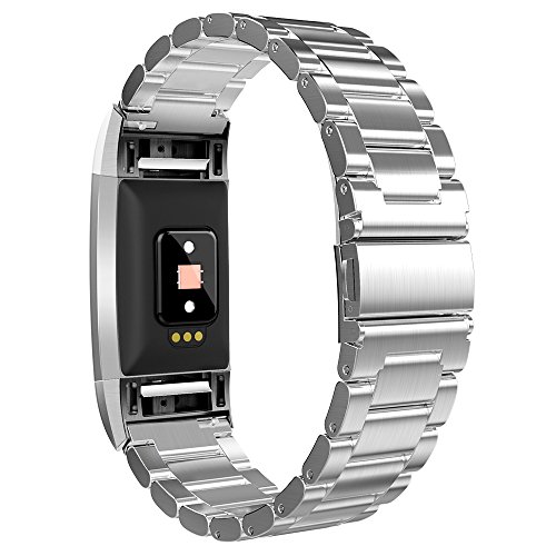 Band for Fitbit Charge 2, Simpeak Stainless Steel Replacement Band Strap for Fit bit Charge2 Fitness Watch, Black / Silver