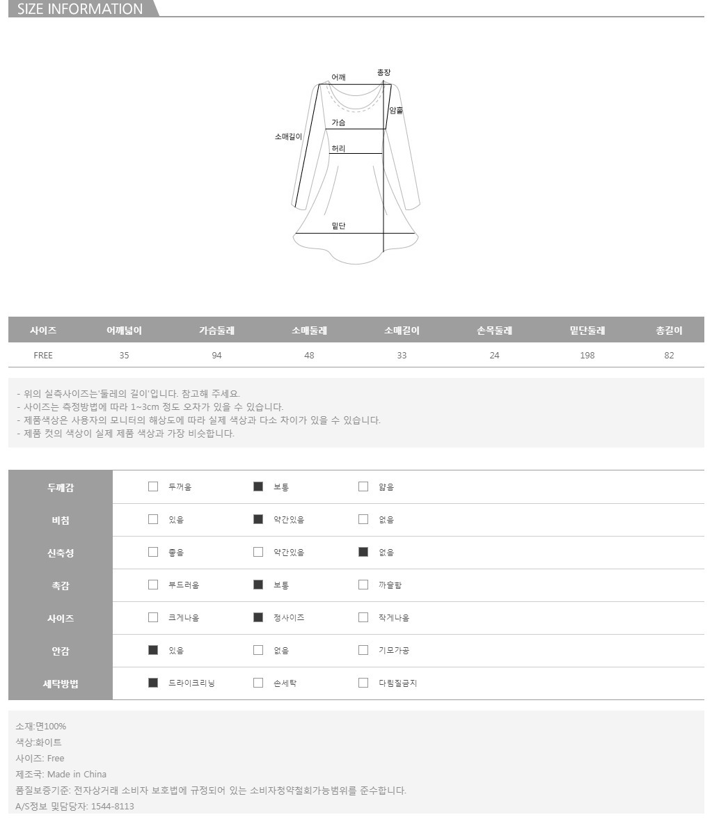 모델의 착용 컬러는 화이트 입니다.