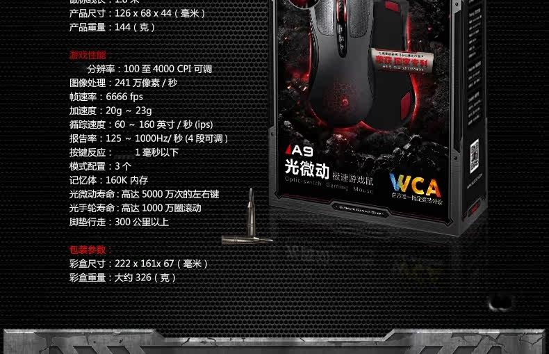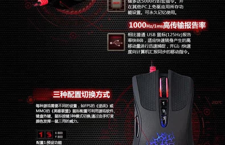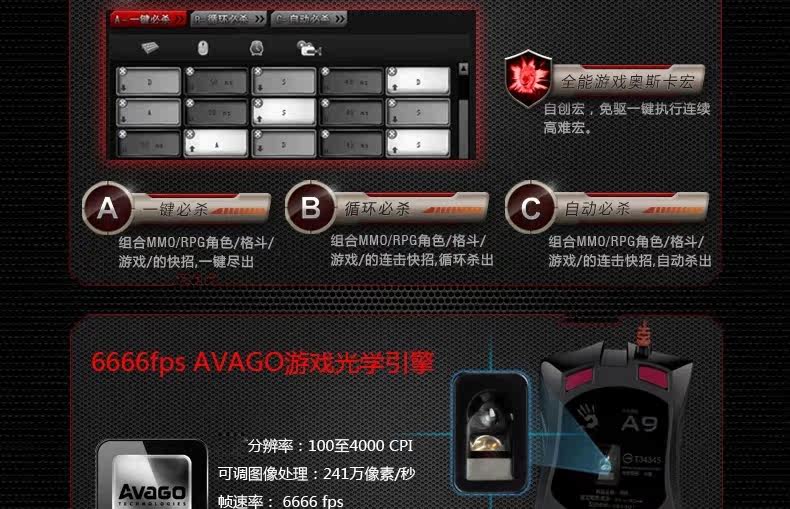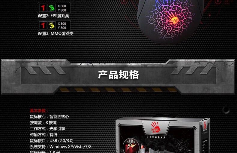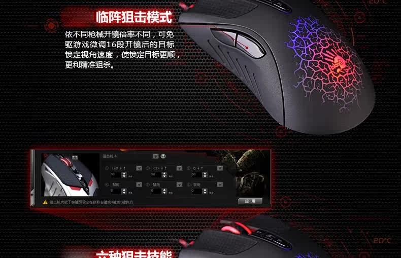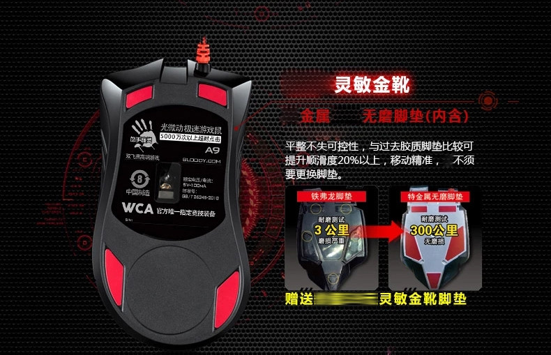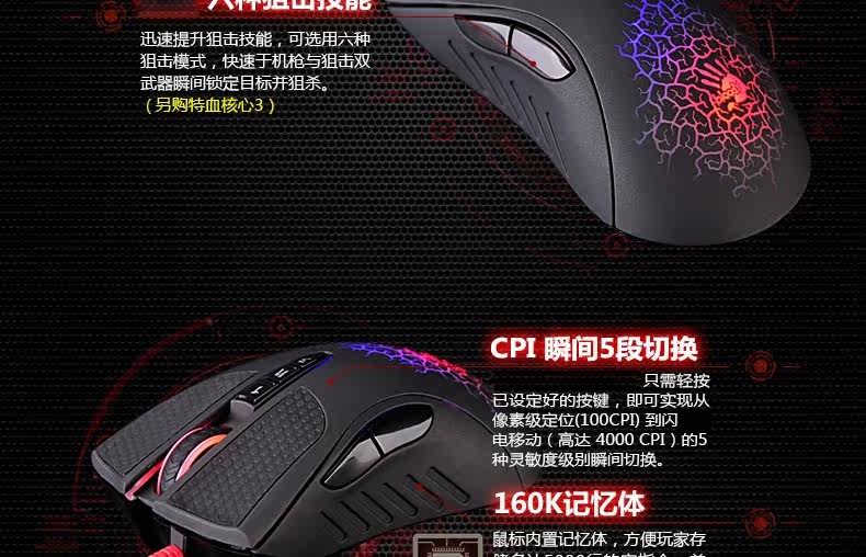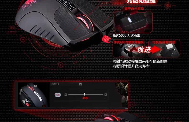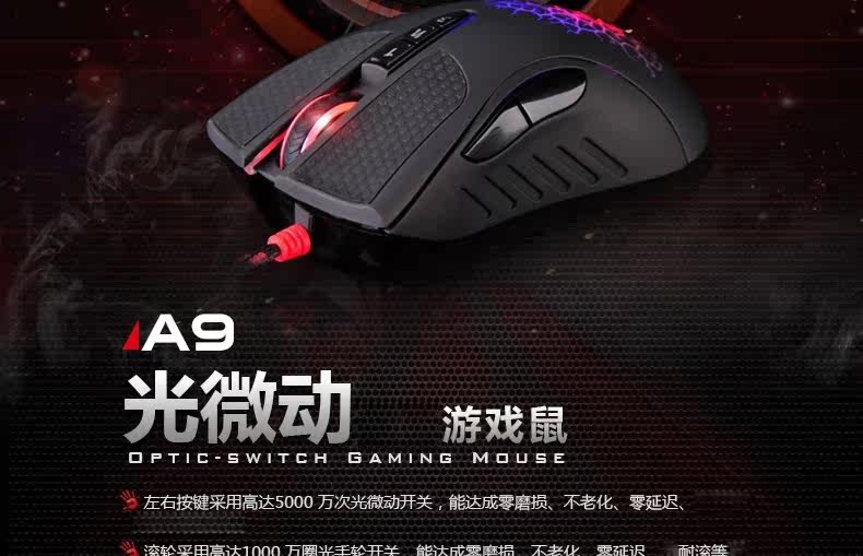 双飞燕 血手幽灵A90 光感激光游戏鼠标 CF LOL WCA背光专业压枪爆