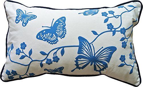 Decorative Foaming Printed Butterfly Throw Pillow with Piping Cover 20x12 Blue