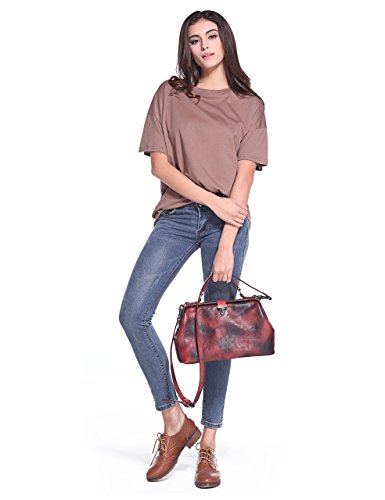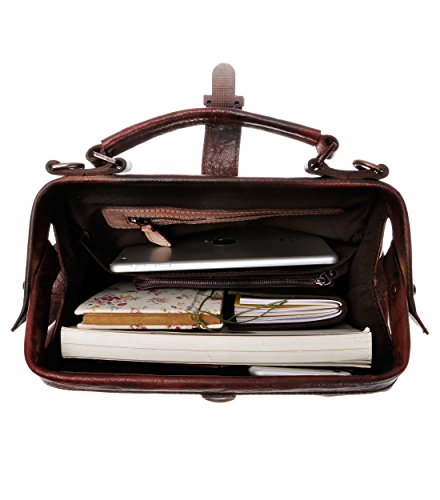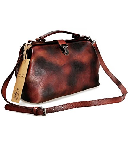 ZLYC Women Retro Vintage Genuine Leather Doctor Top Handle Cross Body Bag
