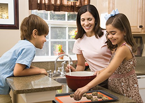 - Healthier & Kids Friendly - Made of Food-Grade Silicone which is used for the nipple of baby bottle, meet FDA & LFGB Standards, no chemical odors, giving you and your children the most safe baking sheet liner.