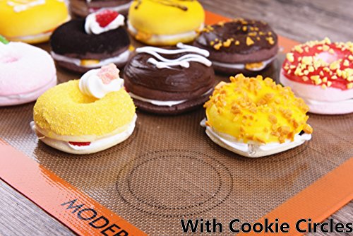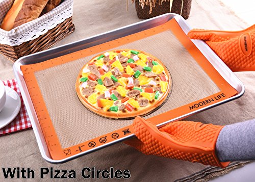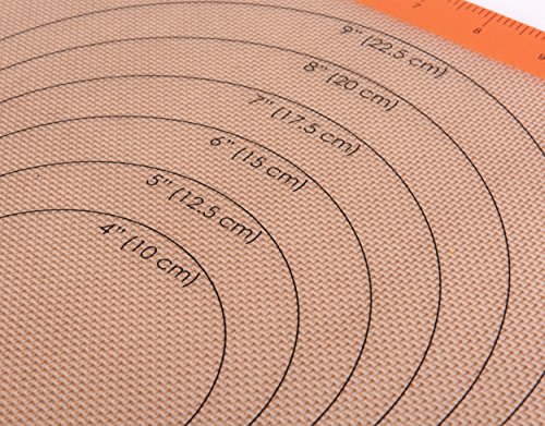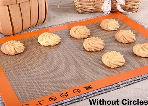 - Set of 3 & Best Design - One baking sheet mat has Cookie circles, one has Pizza Circles and Measurements, and the other is blank. Each bake mat measures approximately 420x295mm(16.5x11.6 inches)(LxW), Fits half sheet size baking pans. Each package also include an complimentary oil brush.