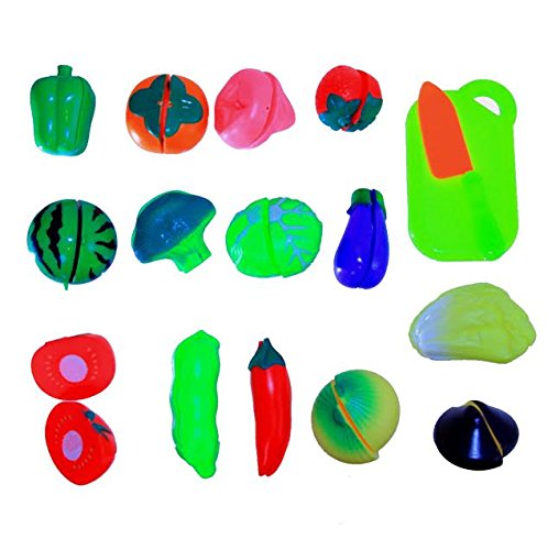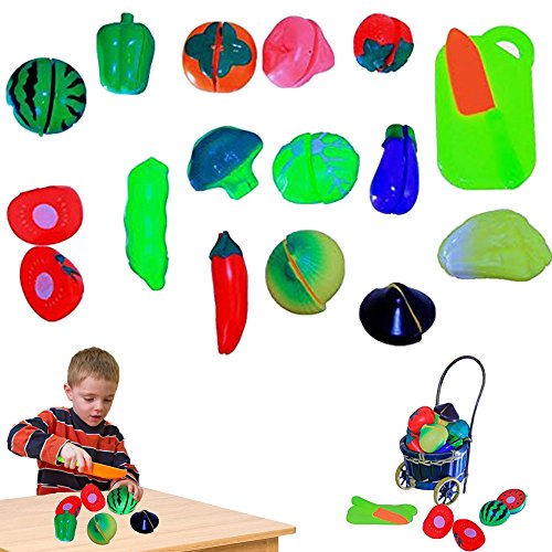 -. Feature : FUN & ENGAGING GAMES: Your child will love this fun, colorful pretend fruit & vegetable package. This fun & stimulating set includes 14 assorted make believe fruits & vegetables. / CUT AND REATTACH: The 14 fruits and vegetables are each halved, and have Velcro attachments. Kids can slice and chop them in half on the board and then stick them back together. / IMPROVE MOTOR SKILLS: This educational playset helps kids fine tune their motor skills & hand eye coordination using the pretend food items & tools in this kitchen play set. / LEARN LIFE SKILLS: This educational toy familiarizes your child with every day, real life scenarios like cooking in a fun way. A great tool for teachers and perfect for kids' classrooms. / MAKES A GREAT GIFT: Give this as a gift to just about any child! It makes a great reward or incentive to a child for achieving an accomplishment, holidays, birthdays or any occasion.