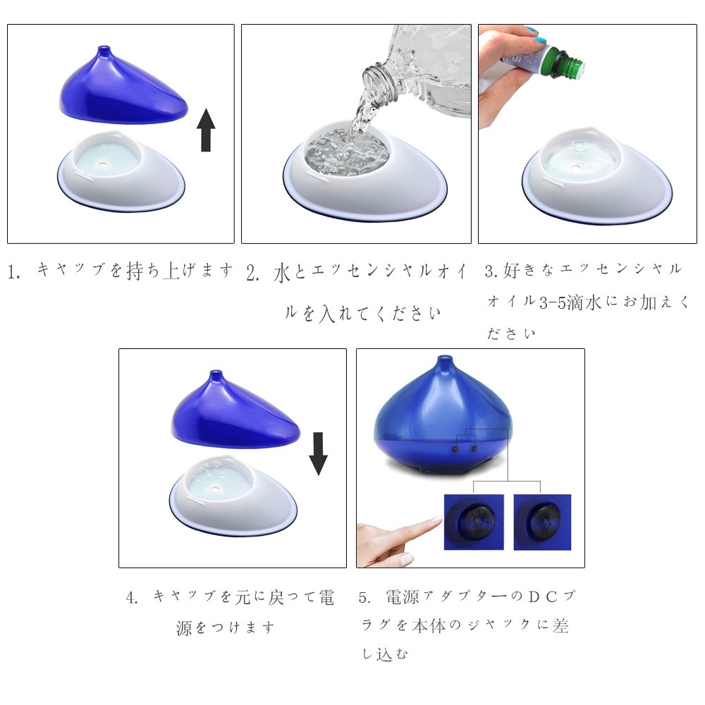 Lift the cabinet 2. Please put in water and essential oil