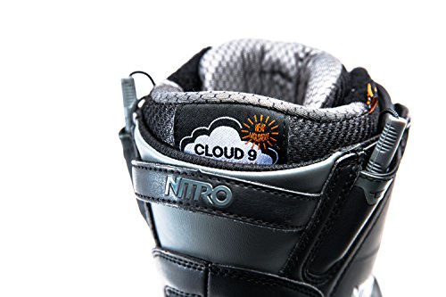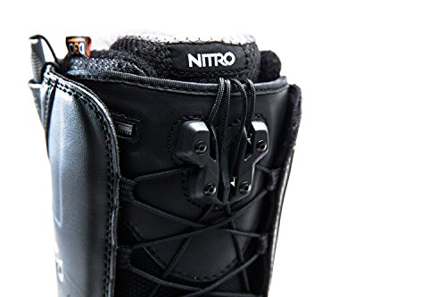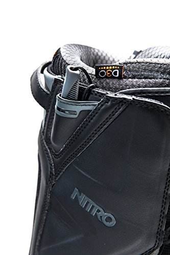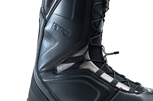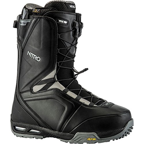 Studio : Nitro Publisher : Nitro Binding : Misc. Product Description The clear-cut favorite for the entire Nitro team, from Eero Ettala's technical freestyle to Austin Smith's steep and deep exploits, the Men's Team TLS Snowboard Boot offers the best in stability and comfort. Sitting on the medium-stiff end of the spectrum, the Nitro Team TLS amplifies response for carving at high speeds, sending bigger jumps, and seeking out powder stashes. Quickly tightening the upper and lower zones, the boot's TLS 5 (Twin Lacing System) provides a fine-tuned fit with the quick, simple pull of each lacing handle. Not only does this system get you in and out quicker, but more importantly, it independently tightens the upper and lower zones for targeted support where you need it most. The Bail Out System allows you to get out of your boots quickly when you're getting ready to leave the resort, especially in freezing-cold parking lots. Blissfully conforming to your feet, the aptly named Cloud 9 liner offers a premium, heat-moldable fit that's insanely comfortable. It's equipped with D30 padding over the ankle's most vulnerable spot (e. g. where the ankle strap ratchets tightly down), preventing pressure points from painfully sidelining your shred session. Looking to the midsole, the EVA foam is paired with airbag impact damping in the heel for a well-cushioned feel when you're stomping landings and charging across choppy snow. Then, the Vibram Icetrek sole lends sure-footed grip for hiking for fresh turns, especially across rocky ridges and icy surfaces. 0