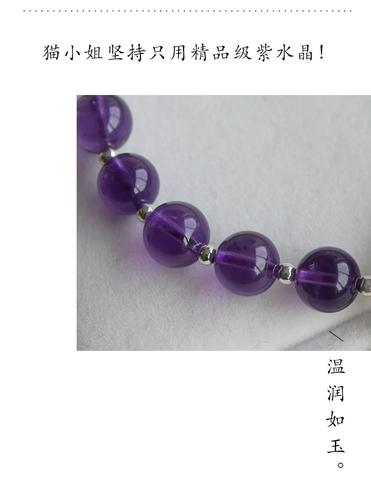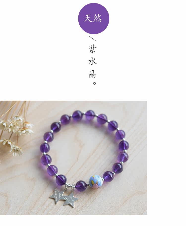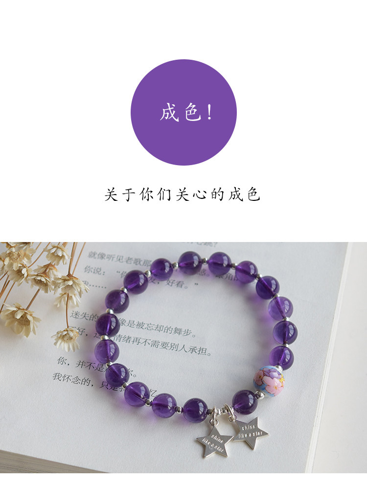 天然乌拉圭紫水晶手链女 学生助学业单圈陶瓷手串闺蜜生日礼物