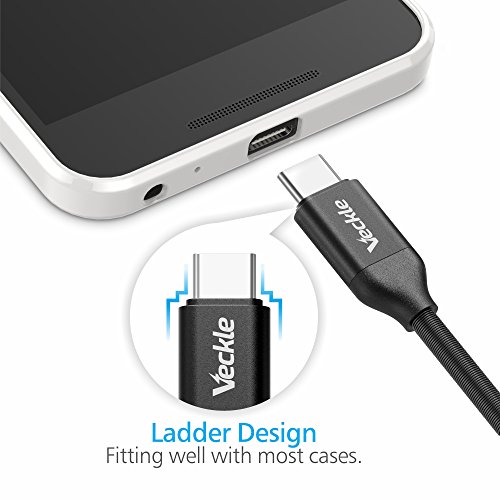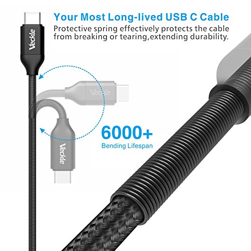 Type C, Veckle 6Ft USB C Cable Braided with Relief Spring Connector for Samsung Galaxy S8, Google Pixel, Nexus 5X, 6P, OnePlus 2, LG G5, Nintendo Switch and More USB Type C Devices, Black