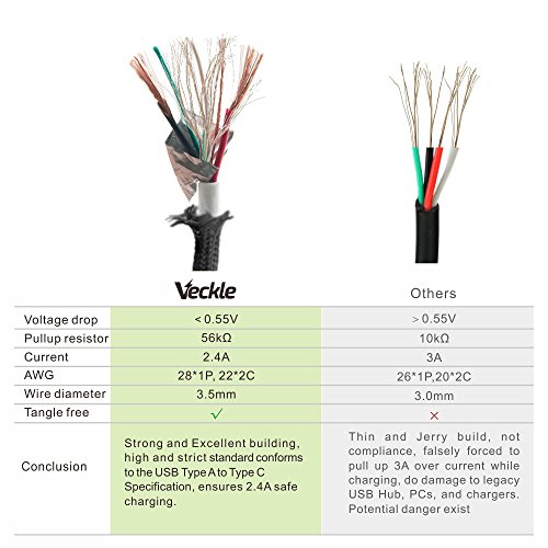 SAFE CHARGING: Conforms to the USB Type C Specification version 1.1, standard 56kilohm identification resistor, which ensures a safe charging at 2.4A Max. and data sync up to 480 Mbps. No damage to your legacy USB charging port