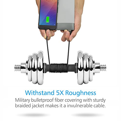 DURABLE: Strong military bulletproof fiber added in cable and covered with sturdy braided jacket improve its flexibility and durability, toughness amplifies 5 times than ordinary type c cable, tensile force increases 2 times