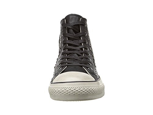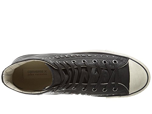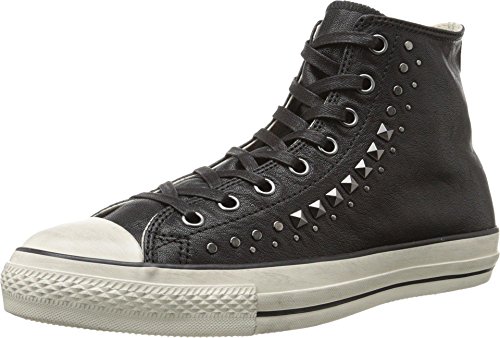 -. Binding : Apparel -. Brand : -. Color : BLACK/GUNMET -. Department : mens -. Feature : Lace-up front closure with waxed cotton flat laces / Hand-burnished premium Italian leather upper / Textile pinstripe lining / Striped midsole with toe bumper / Transparent gel traction outsole with All Star logo -. ProductGroup : Shoes -. ProductTypeName : SHOES -. Title : By John Varvatos Men's CT HI Studded Leather Sneaker