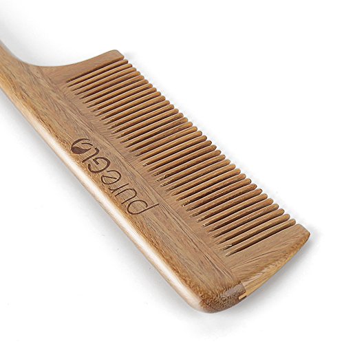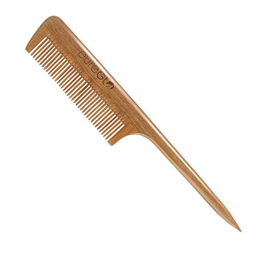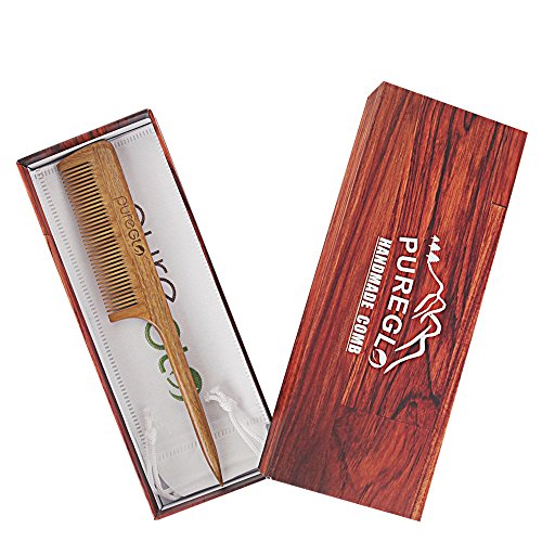 pureGLO Sandalwood Hair Comb – No Static Wooden Teasing Comb Handmade Natural Fine Tooth Rat Tail Comb with Premium Gift Box