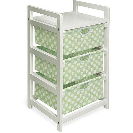 Binding : Baby Product Product Description The Badger Basket White 3-Drawer Hamper Storage Unit with Sage Polka Dots is wonderful for laundry, toys, diapers and more. Easy pullout drawers are a breeze to load and unload. Stoppers on the drawer tracks prevent the drawers from being pushed out the back of the unit. Drawer bottoms have supportive hard panels so contents won't cause the drawers to sag. Canvas drawers are removable from the drawer frames, and can be spot cleaned as needed. 0