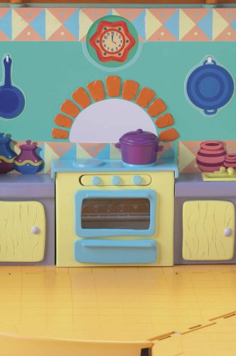 -. Feature : Bring Dora's world to life with this exciting transforming dollhouse! / This colorfully styled talking dollhouse opens and expands to reveal several rooms of interactive play! / Pull up the roof to reveal the second floor, while various accessories unfold, transform, light up and make sounds. / Press the doorbell, fridge, oven, kitchen table, family photo, and radio to hear over 30 phrases in both English and Spanish. / Includes 3 figures: Dora, Mami and Papi. Additional figures and furniture sold separately.