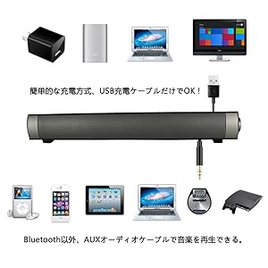 Wireless Soundbarは、お使いのBluetooth対応機器からワイヤレスで音楽を再生できる、Bluetoothスピーカーです。