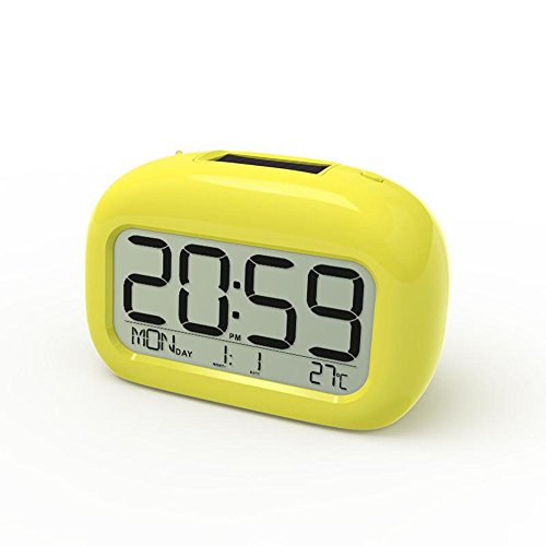 - Feature : Large LCD display, easy to read numbers. / Solar panel to store energy; perfect for travelling, portable to carry and use. / Intelligent backlight, when there is insufficient light, it will automatically light up. / Countdown function; Support snooze function / Power Supply: 4*AA batteries (not included)