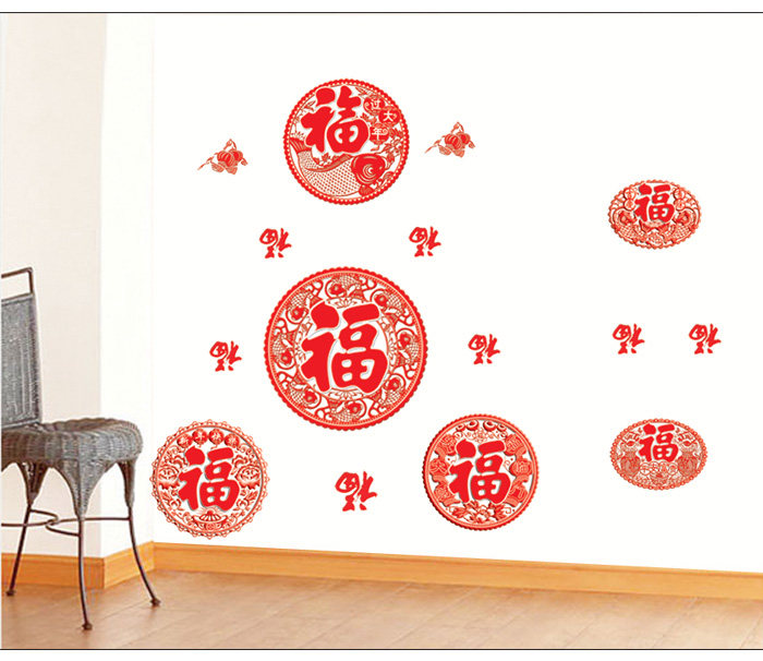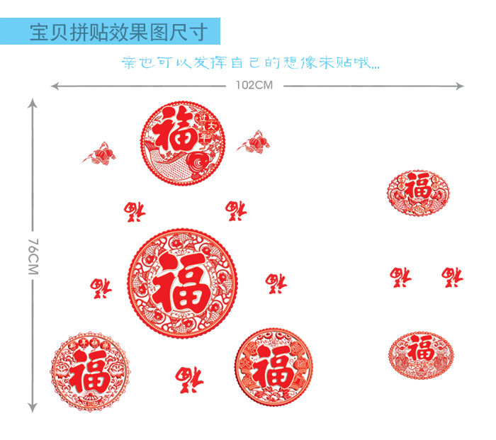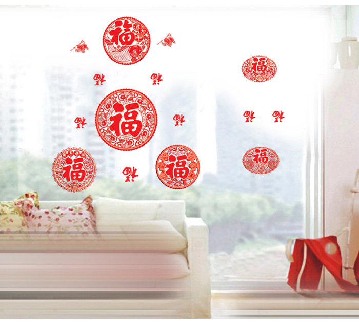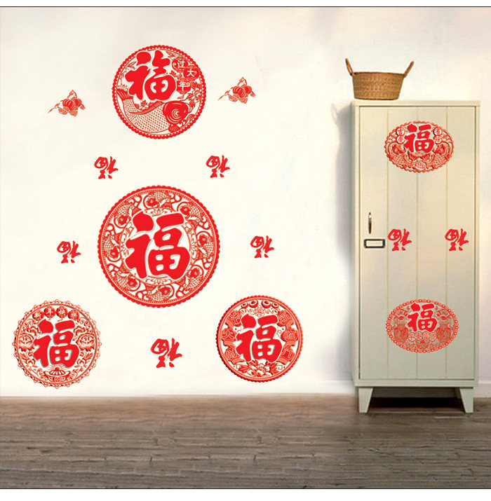 春节贴画店铺橱窗户玻璃门贴纸过新年装饰喜庆墙贴纸福字窗花贴