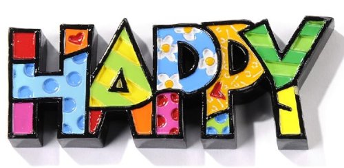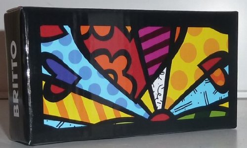 Showcasing renowned pop-artist Romero Britto's use of vivid color and bold graphic design, the miniature poly resin table decor features HAPPY sentiment.Feature